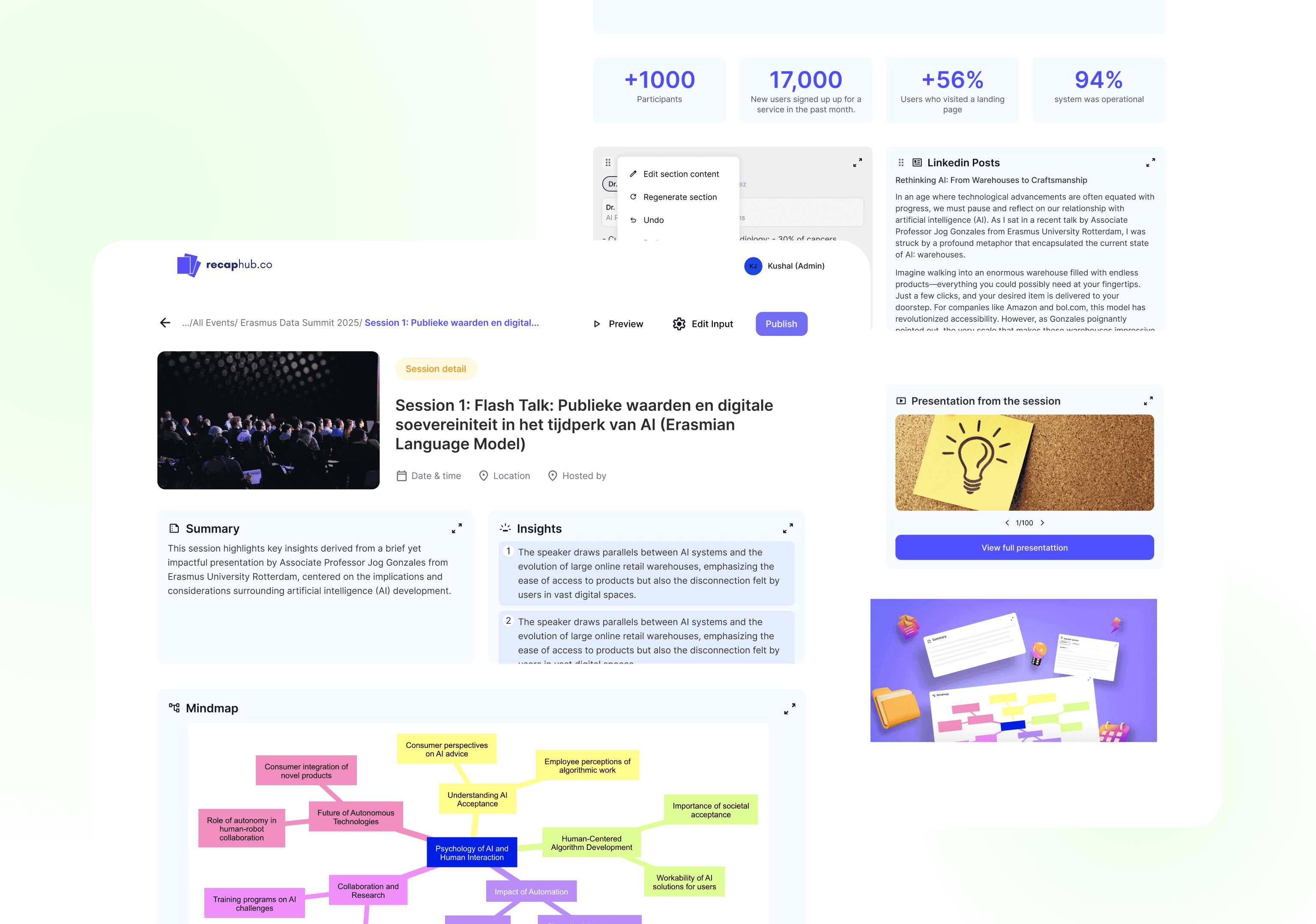 RecapHub redefines how events create value, converting recordings into summaries, insights, and reusable content. From conferences to webinars, it empowers organizers to extend audience engagement and maximize ROI effortlessly.